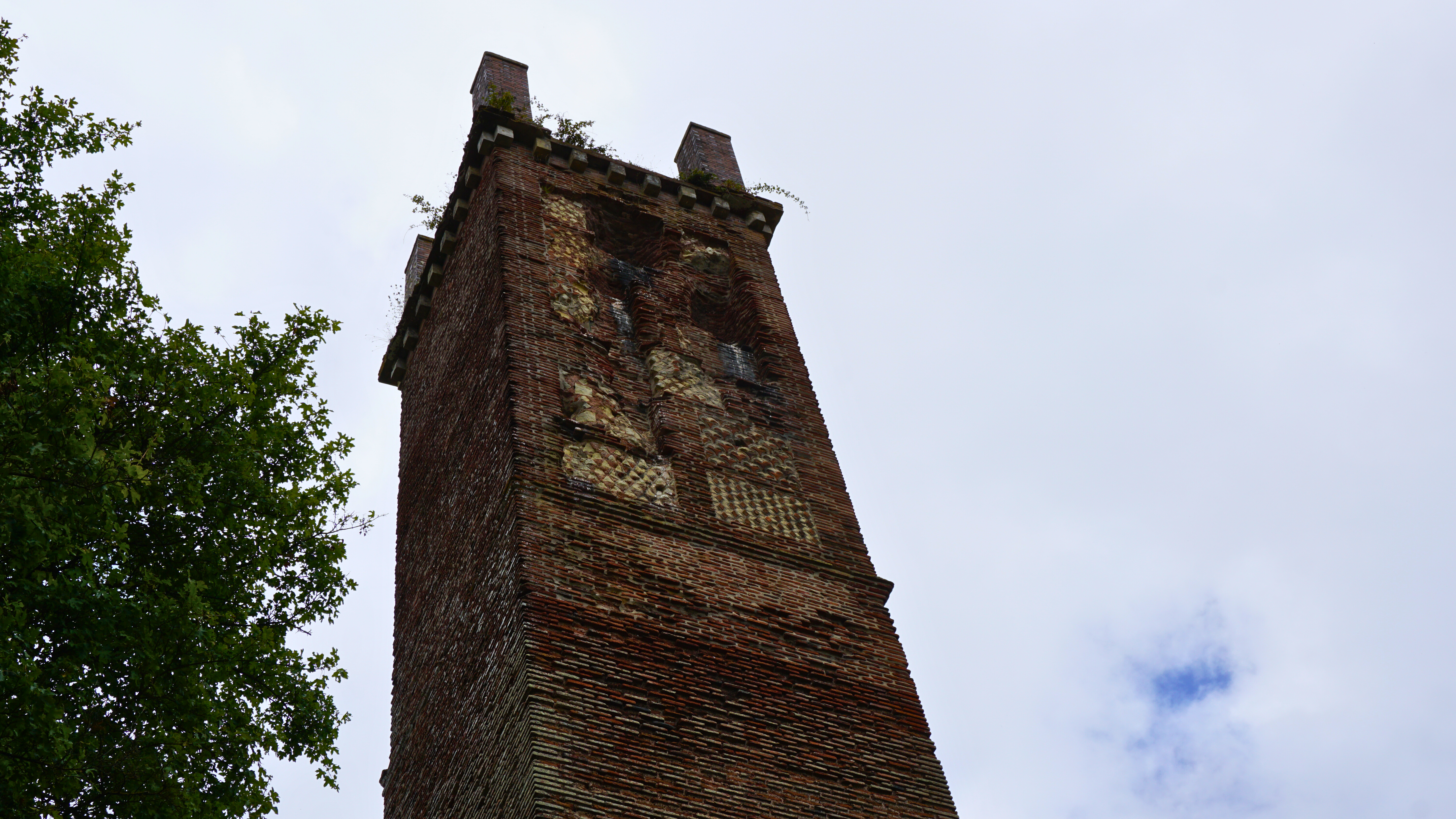 L’emplacement ne devait rien au hasard : la grande voie reliant Caesarodunum (Tours) à Juliomagus (Angers) passait directement devant la pile, garantissant à ce mausolée d’être vu par tous les voyageurs et marchands qui sillonnaient la vallée de la Loire. Haute de près de 100 pieds romains (29,50 m), construite en briques posées sur un solide noyau en pierres de calcaire local mesurant 20 pieds romain de côté (5,80 m), la pile affichait sur sa face sud douze panneaux ornés de motifs géométriques polychromes, une technique de construction très rare pour l’époque.